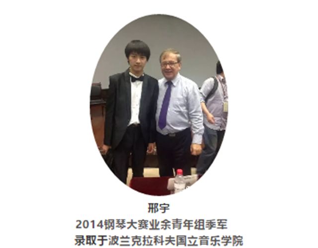 邢宇同学来自河北,2014年10月参加举音乐学院青少年钢琴音乐大赛,被波兰克拉科夫音乐学院系主任看重,当场宣布录取钢琴表演专业本科。