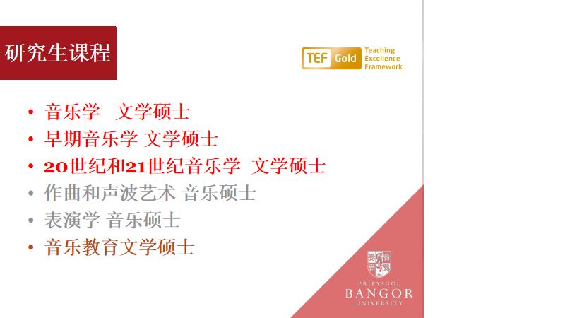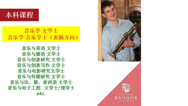 班戈大学音乐学院小班教学,且提供多元化课程,同学可根据自己的兴趣制定课程包括:作曲、音乐学和表演等。